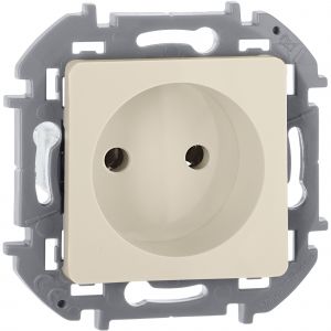 Розетка без заземления для скрытого монтажа Inspiria, цвет ''Слоновая кость'', максимальный ток 16А, напряжение ~250В, максимальная мощность 3680Вт, винтовые зажимы. Применяется для присоединения однофазных электрических потребителей к сети переменного тока в зданиях с проводкой без заземления (без защитного проводника).