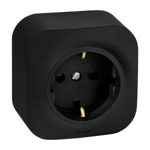 Розетка 1-местная для открытой установки с заземлением с защитными шторками 16Ачерный матовый QUTEO