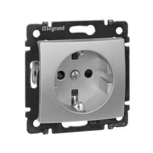 Розетка 1-местная с заземлением с защитными шторками 16А алюминий VALENA
