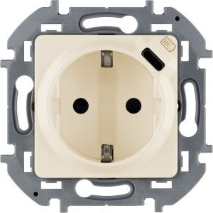 Розетка 1-местная с заземлением с защитными шторками 16А с USB C 5В безвинтовое крепление слоновая кость INSPIRIA