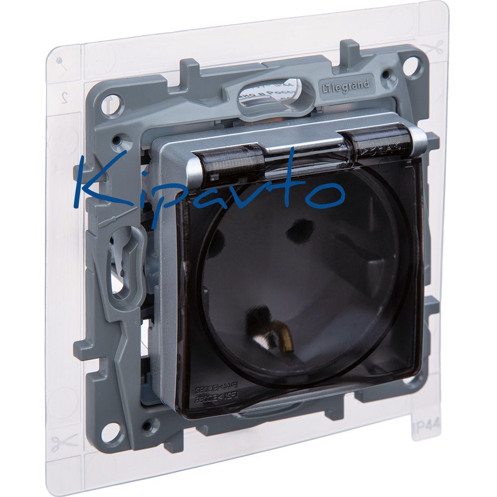 Розетка 1-местная с заземлением с защитными шторками и крышкой 16А IP44 алюминий ETIKA