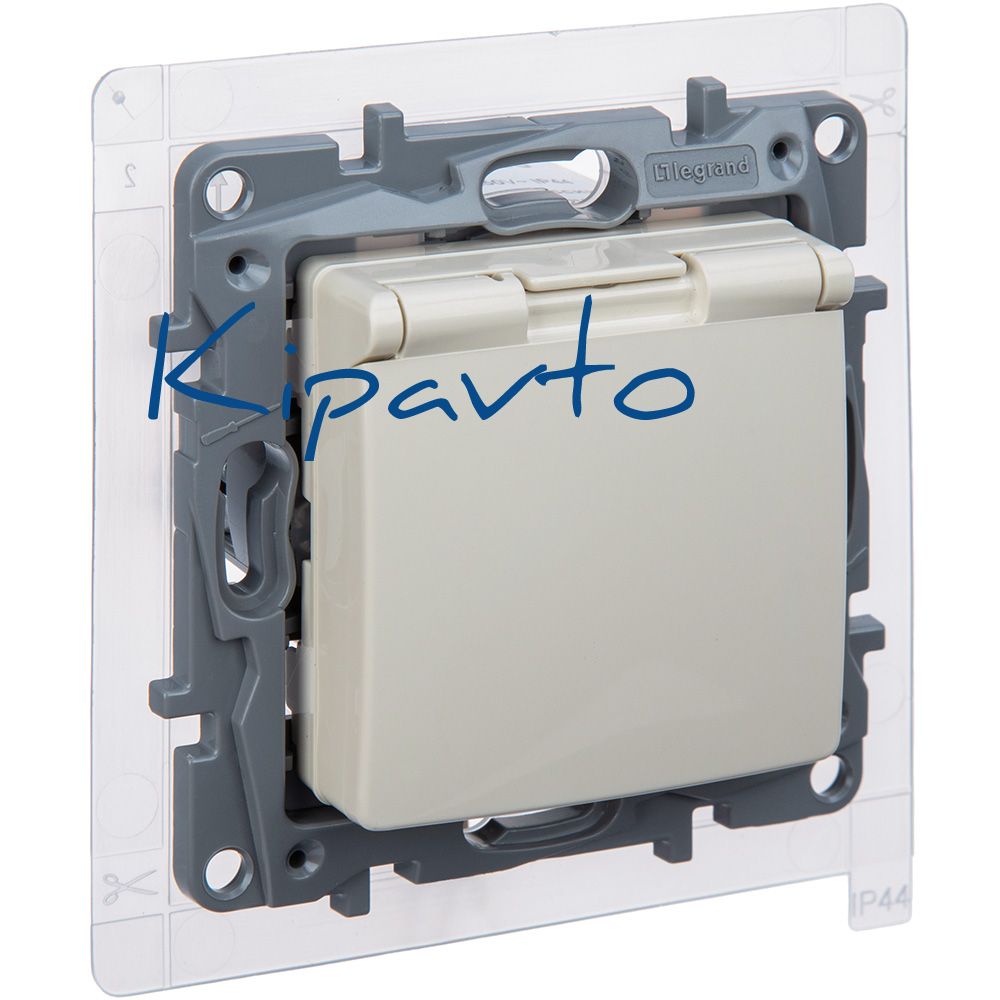 Розетка 1-местная с заземлением с защитными шторками и крышкой 16А IP44 слоновая кость ETIKA