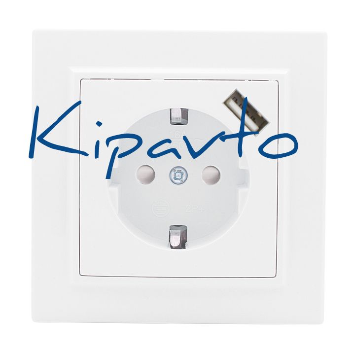 Розетка 1-местная СП с/з Минск 16А белая с защитными шторками с USB