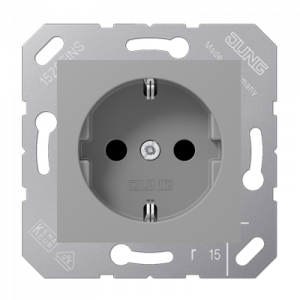 Штепсельная розетка SCHUKO одинарная, с заземлением, с крышкой, с шторками, 16A, 250В (механизм + накладка, без рамки). Серия A500 Материал- термопласт Цвет- белый
