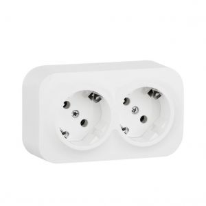Розетка 2-местная для открытой установки с заземлением с защитными шторками с предварительным подключением 16А белый QUTEO
