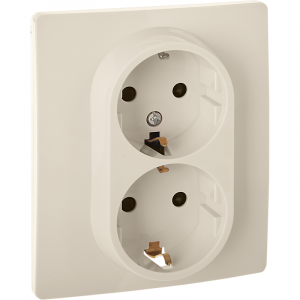 Розетка 2-местная с заземлением с защитными шторками 16А в сборе слоновая кость INSPIRIA