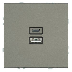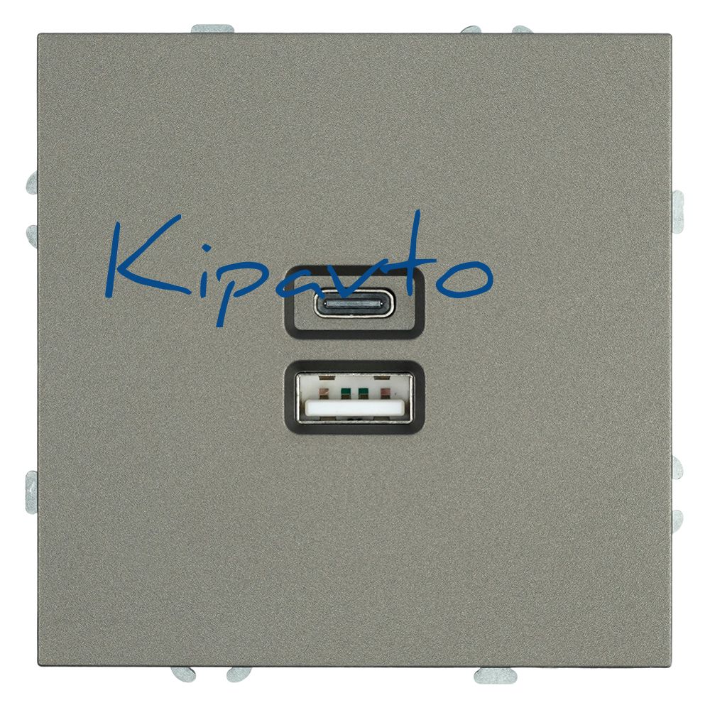Розетка 2-местная USB + Type C (механизм) 250В 20W антрацит soft touch серия Эмили STEKKER