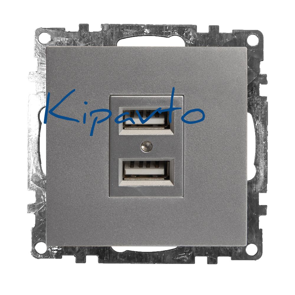 Розетка 2-местная USB (механизм), 250В, 2,4А, серия Катрин, серебро