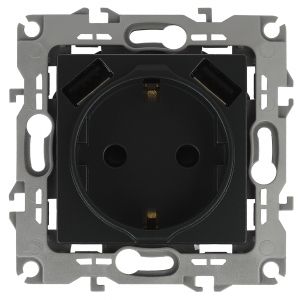 Розетка 2P+E 16A-250В, штор. с 2xUSB 5В-3А, Эра12, антрацит 12-4109-05