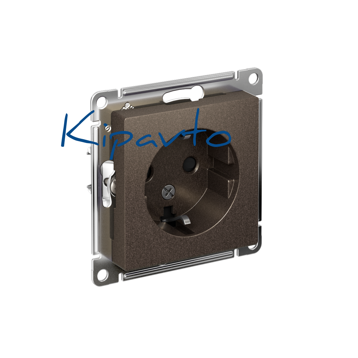 Розетка ATLASDESIGN с заземлением со шторками 16А механизм мокко