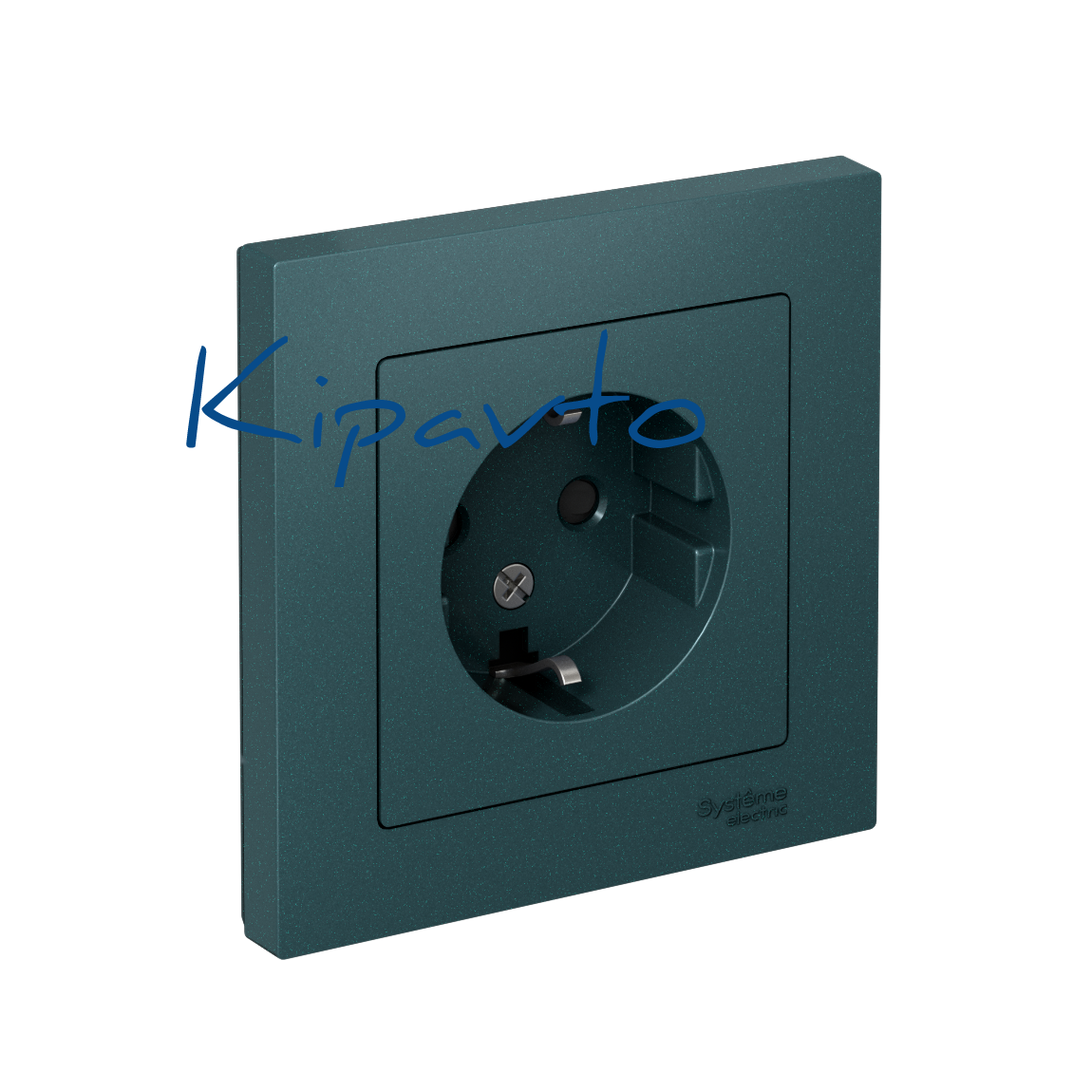 Розетка Systeme Electric (ранее Schneider Electric) серии AtlasDesign (в сборе, цвет изумруд) одинарная с заземлением и без шторок подходит для сетей 250 В, на ток 16 А. Заземляющий контакт обеспечивает дополнительную защиту от удара электрическим током. При наличии заземления электрический потенциал уходит в землю, защищая человека. Лицевые детали из качественного ABS-пластика, устойчивого к царапинам и УФ-излучению. Изделие поставляется в комплекте с рамкой того же цвета.
