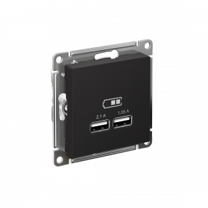 Механизм Systeme Electric (ранее Schneider Electric) серии AtlasDesign в цвете карбон розетки для зарядки с двумя разъёмами USB, с выходным напряжением 5 В постоянного тока и выходами с номинальным током по 2,1 А. USB розетка позволяет напрямую заряжать одно или два мобильных устройства. Лицевые детали из качественного ABS-пластика, устойчивого к царапинам и УФ-излучению. Благодаря покрытию «soft touch» к изделию приятно прикасаться.