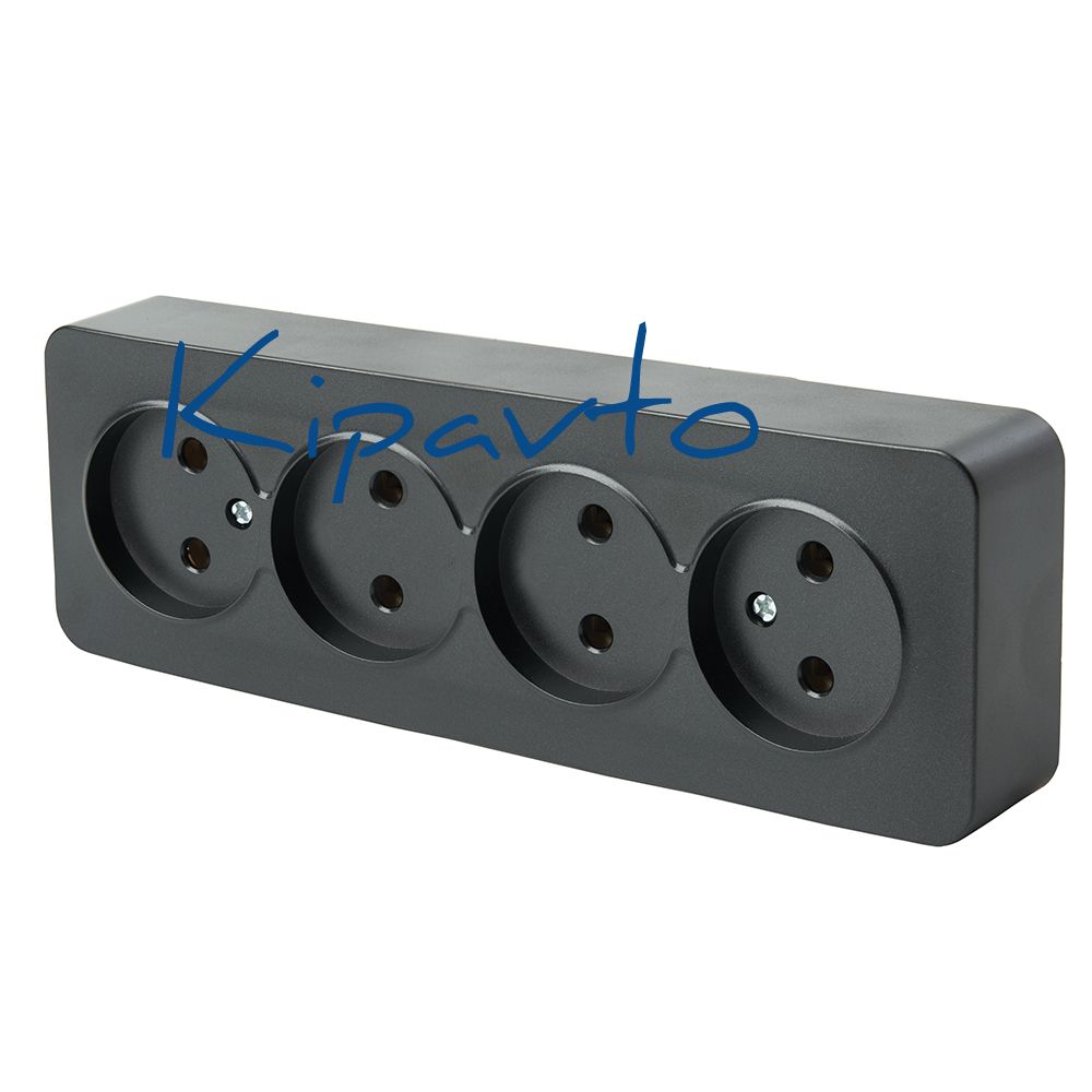 Розетка четырехместная б/з 250В 10А серия София черный матовый STEKKER