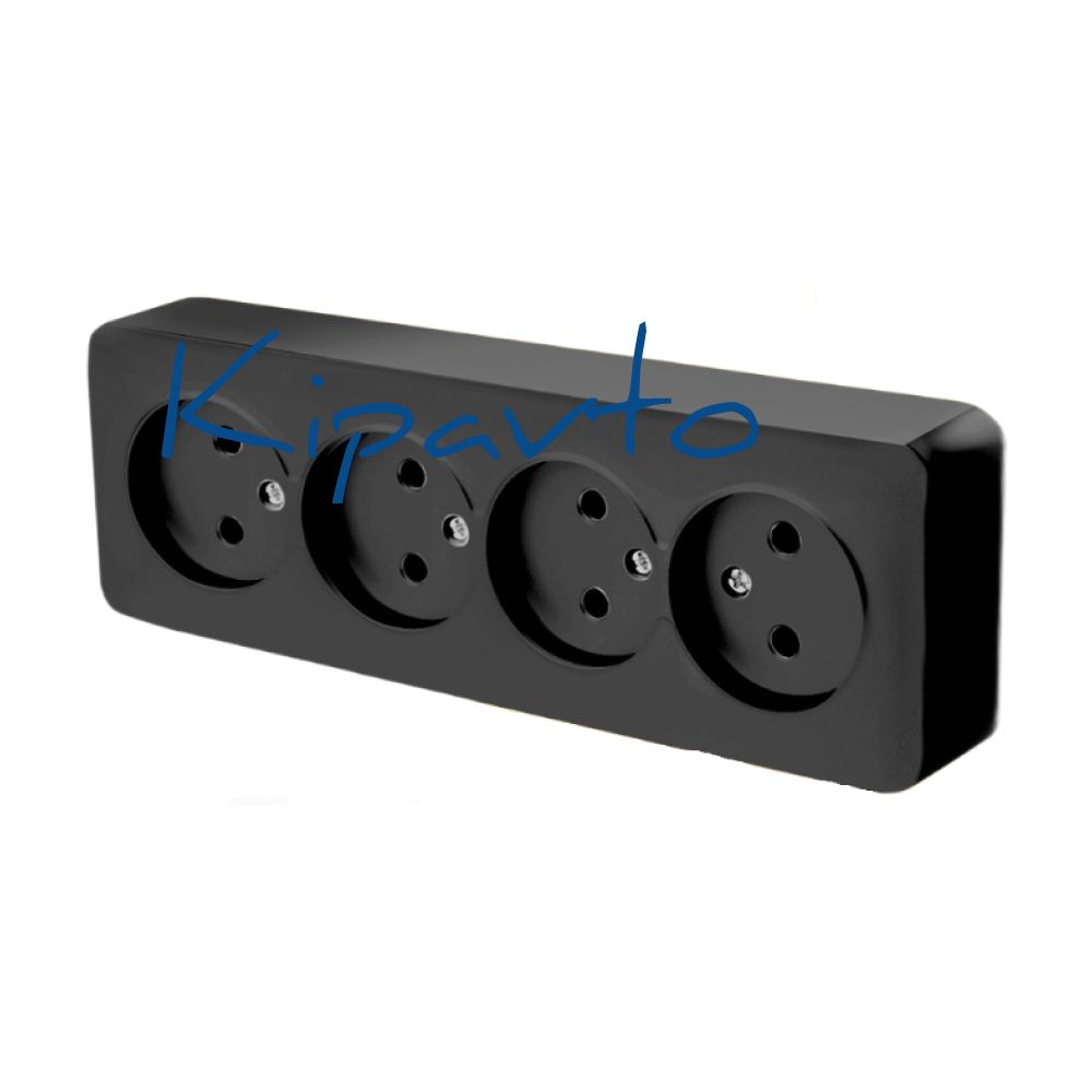 Розетка четырехместная б/з 250В 10А серия София черный STEKKER