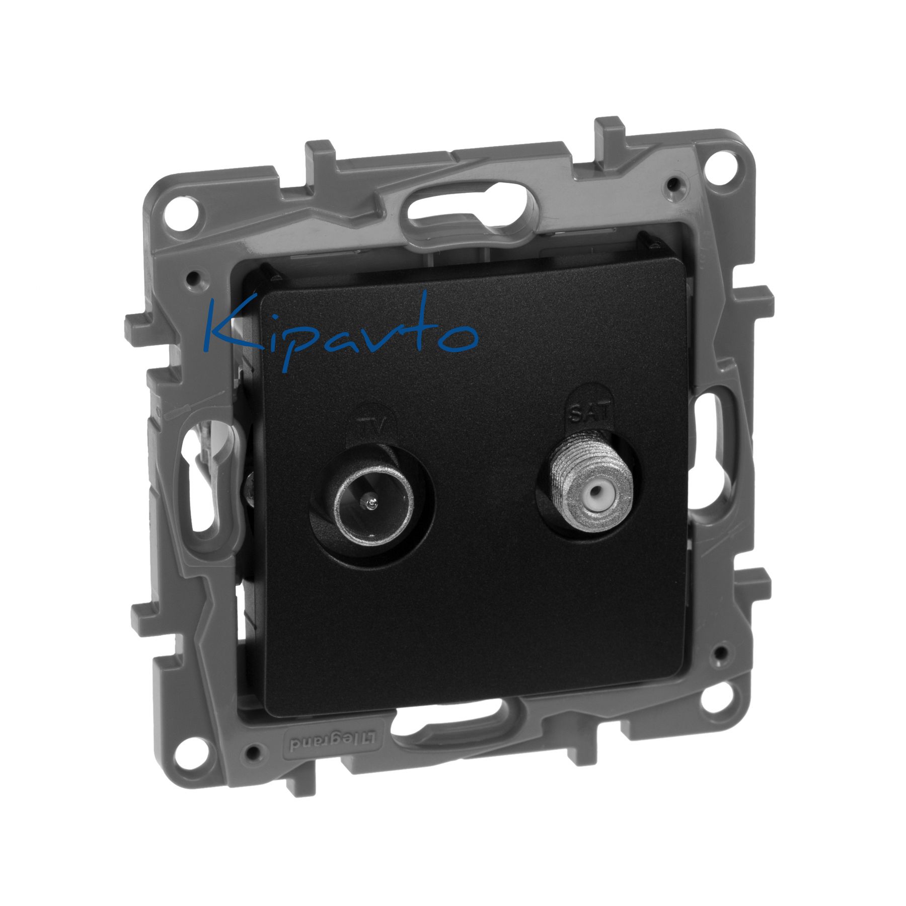 Розетка двойная TV+SAT тип звезда антрацит ETIKA