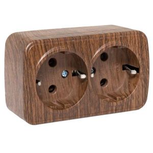 Розетка двухместная ОП Минск 16А с заземлением темное дерево