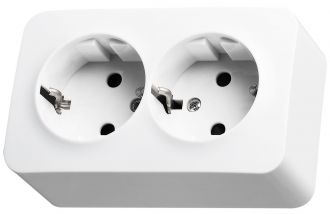 Розетка двухместная Schuko со шторками накладного монтажа цвет белый 16A 250В 2P+T