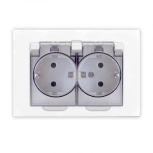 Розетка двухместная UNIVersal серия Афина с/з с прозрачной крышкой, с/у, 16А, 220В, механизм, белая (еврослот)