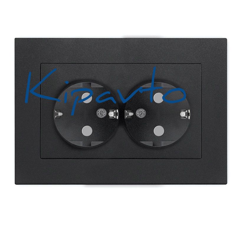 Розетка двухместная UNIVersal серия Афина с/з, з/ш, с/у, 16А, 220В, графит (еврослот), механизм
