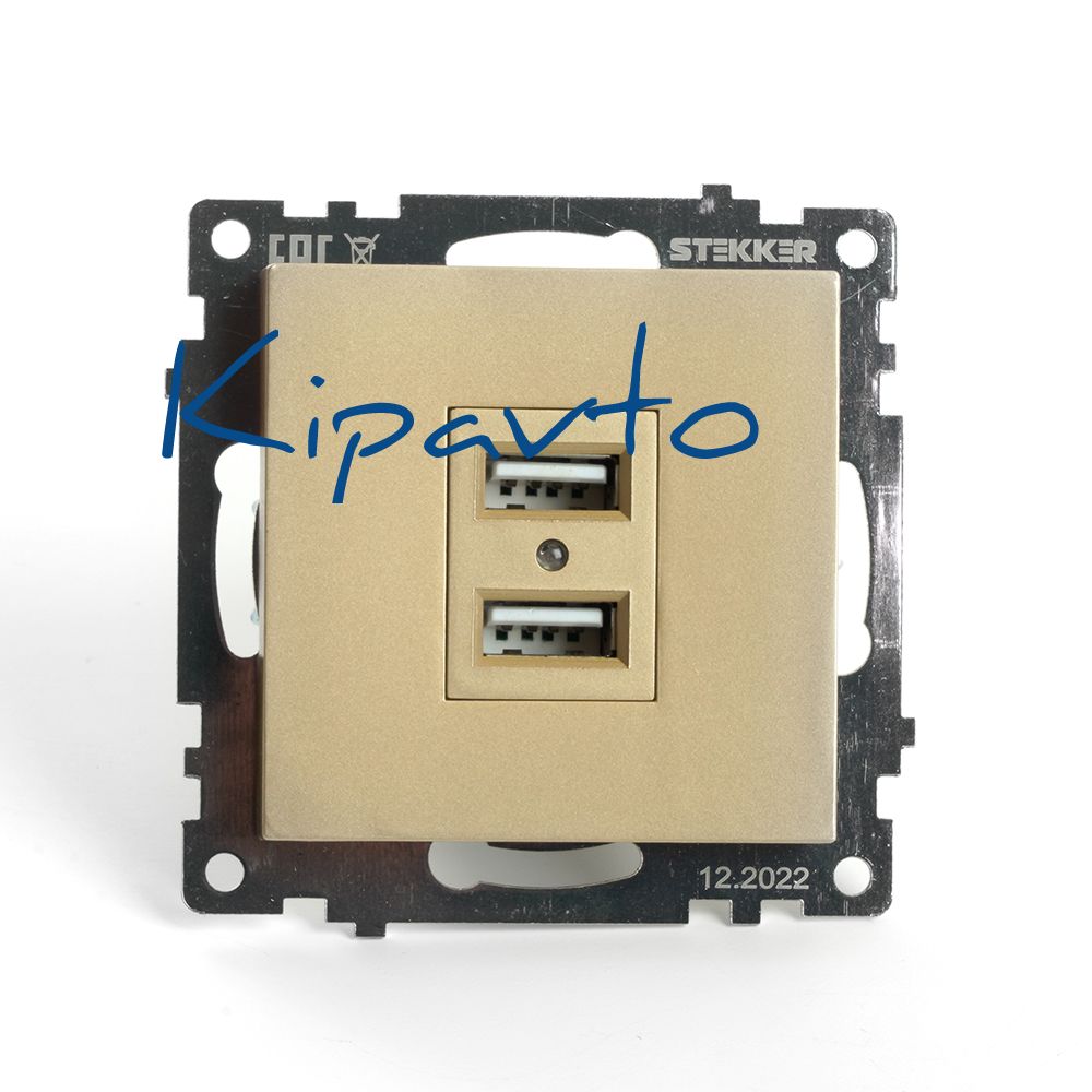 Розетка двухместная USB (механизм) 250В 2,1А серия Катрин золото STEKKER