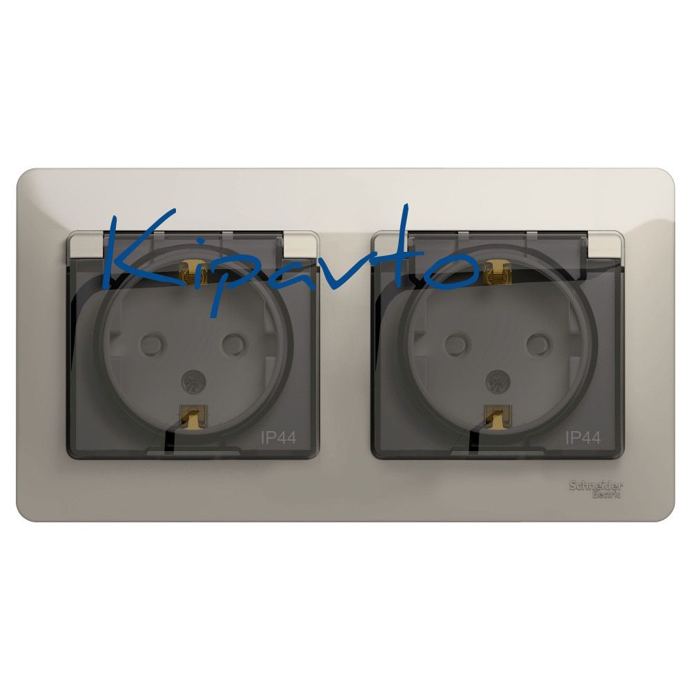 Розетка GLOSSA двойная с заземлением со шторками в сборе IP44 молочный