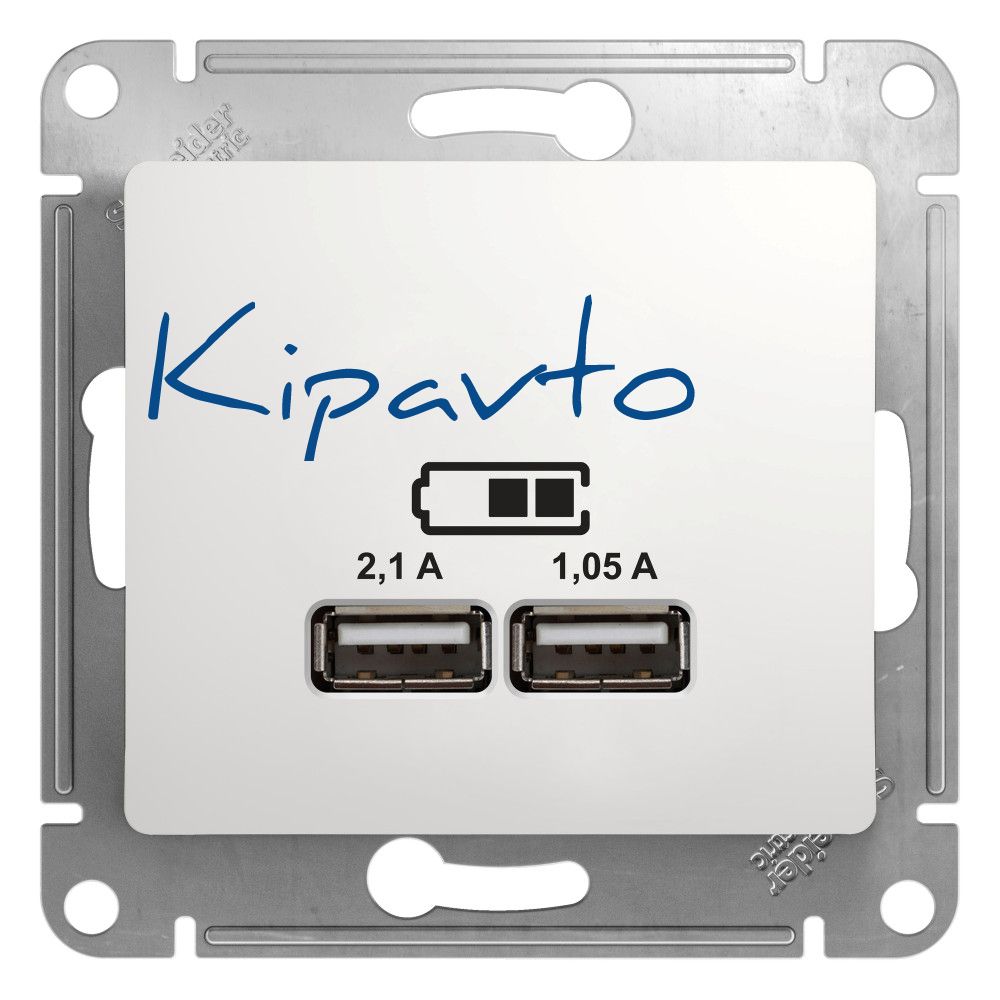 Механизм Systeme Electric (ранее Schneider Electric) серии Glossa (цвет белый) розетки с двумя разъёмами USB с выходными напряжением 5 В постоянного тока и выходами с номинальным током по 2,1 А. Предназначен для зарядки мобильных устройств: телефоны, планшетные компьютеры, mp3/mp4 плееры. Может заряжать одно или два устройства одновременно. Выполнен из материала PС+ASA, стойкого к УФ-излучению и появлению царапин.