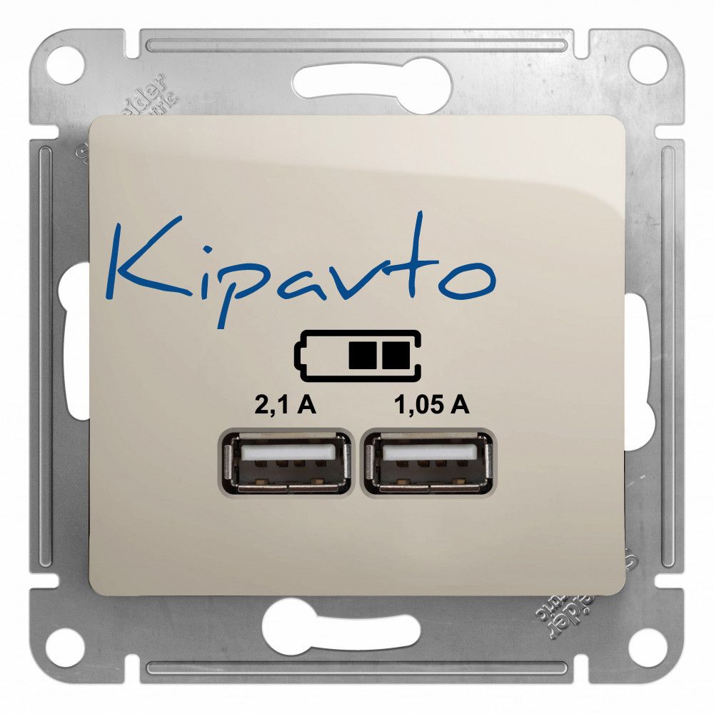 Розетка GLOSSA USB 5В/2100мА 2х5В/1050мА механизм молочный
