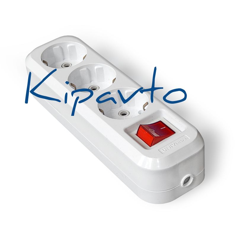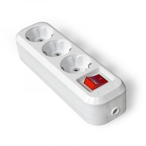 Розетка-колодка 3 поста наружная с заземлением с выключателем ABS-пластик