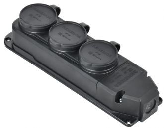 Розетка колодка тройная трехместнаяс защитной крышкой IP44 каучук черная GENERICA
