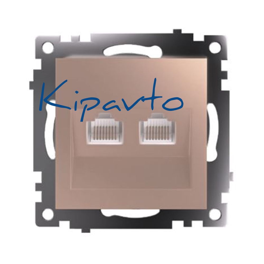Розетка компьютерная 2-местная RJ-45 (механизм) серия Катрин шампань STEKKER