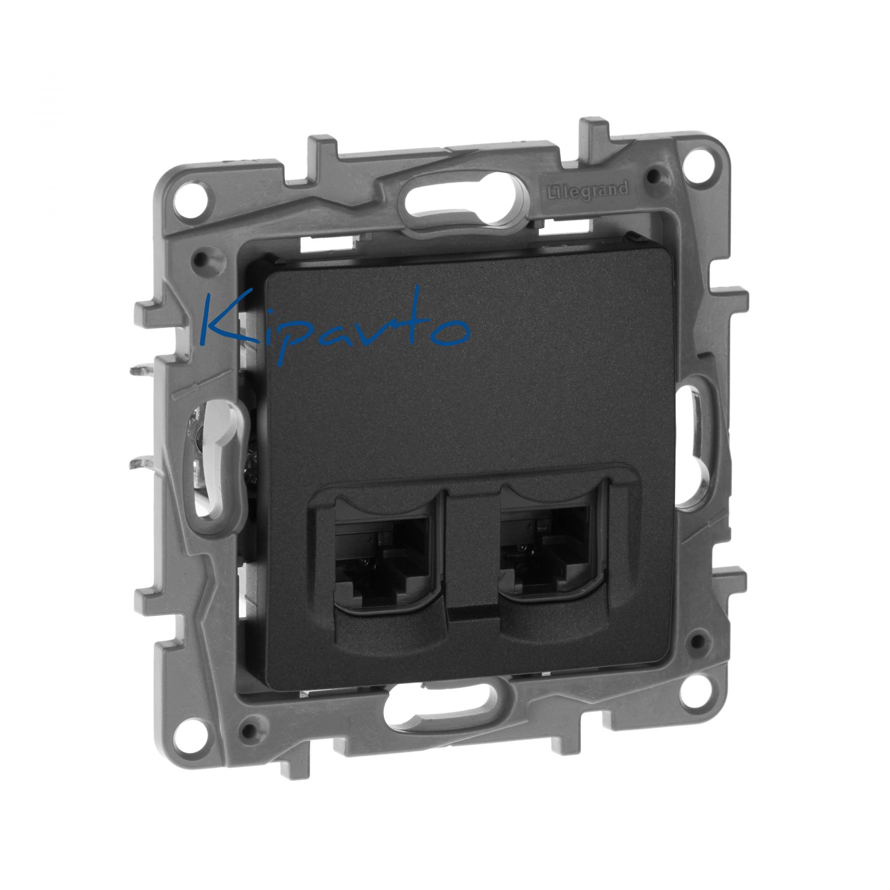 Розетка компьютерная двойная RJ45 категория 5Е UTP антрацит ETIKA
