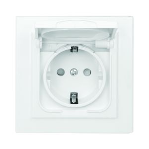 Розетка Минск 1-местная СП с заземлением и крышкой16А белая защитные шторки IP44