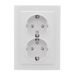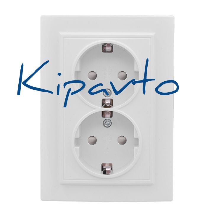 Розетка Минск 2-местная СП с заземлением 16А белая защитные шторки