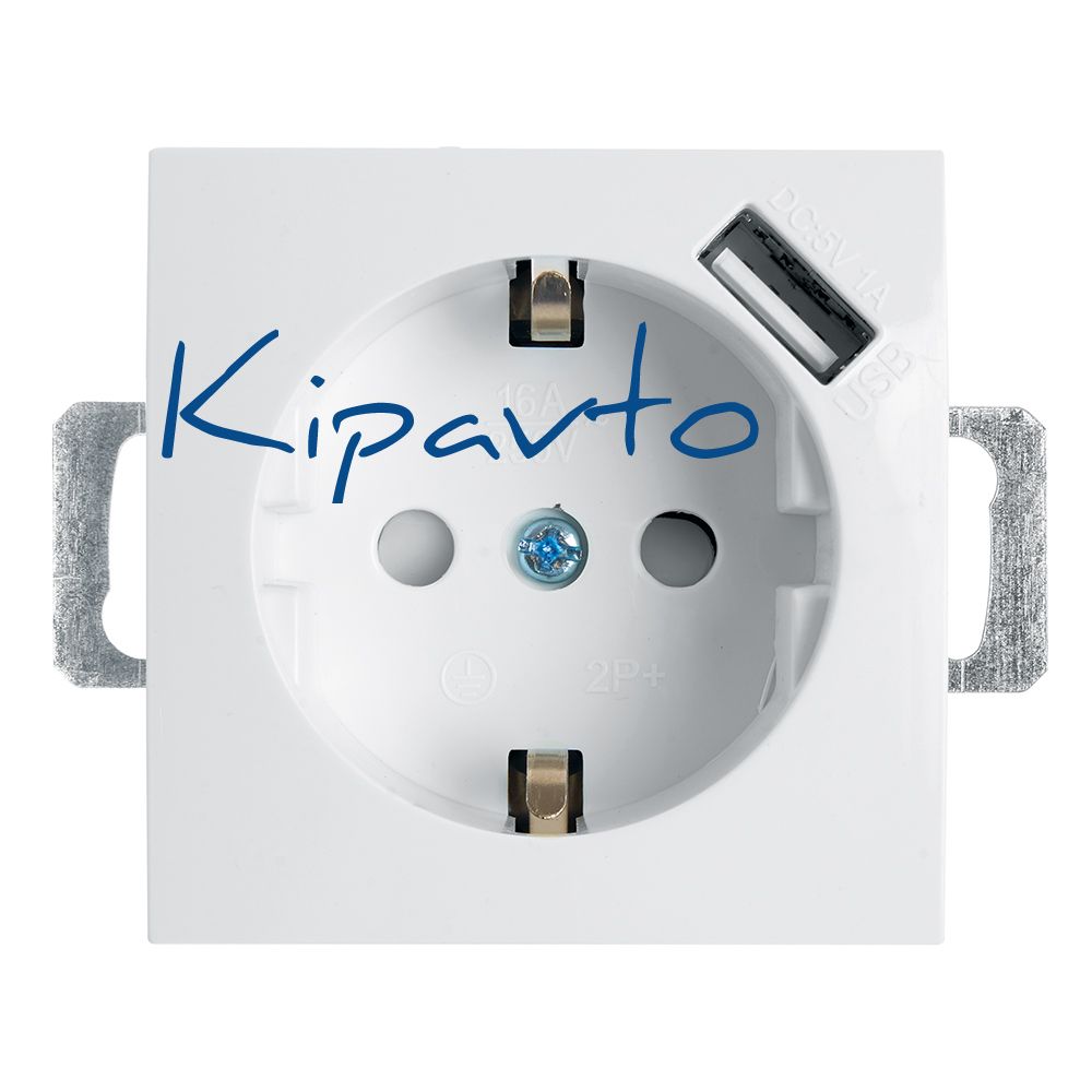Розетка одноместная (механизм) с/з 250В, 16А с USB 1А, серия Эрна, белый, Stekker