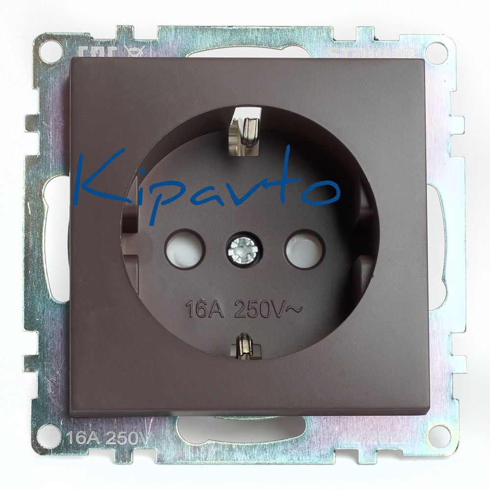 Розетка одноместная с защитной шторкой с/з (механизм), 250В, 16А, серия Катрин, шоколад Stekker