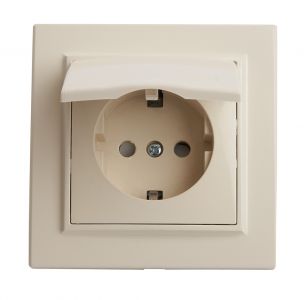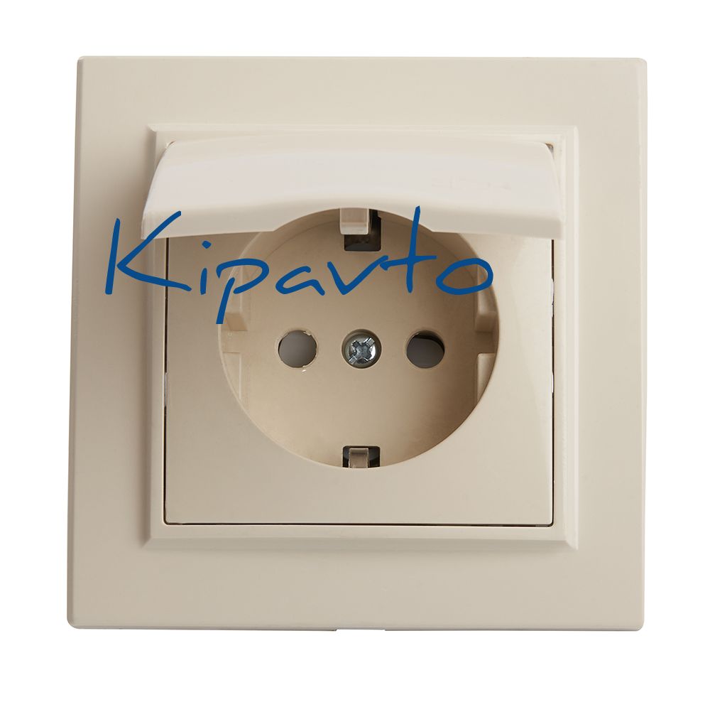 Розетка одноместная с/з с крышкой, 250В, 16А серия Эрна, слоновая кость Stekker