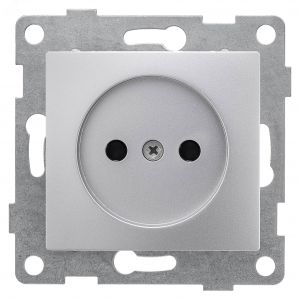 Розетка однопостовая Bravo б/з с з/ш, механизм, 16А, 250В, серебро