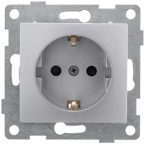 Розетка однопостовая Bravo с/з с з/ш, механизм, 16А, 250В, серебро