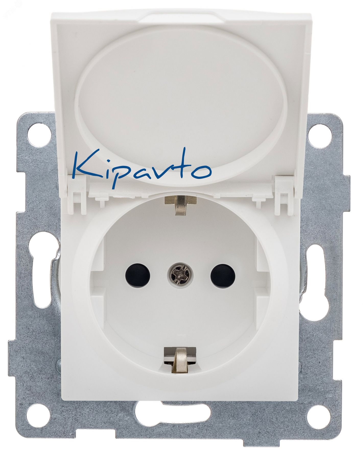 Розетка однопостовая Ugra с/з с з/ш и крышкой, механизм, 16А, 250В, белый