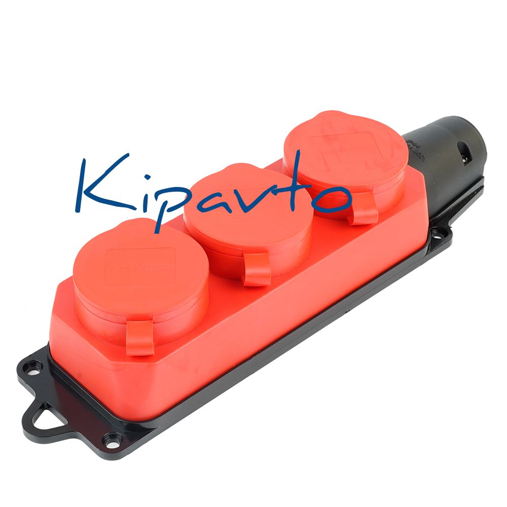 Розетка STEKKER RST16-23-44-3 на 3 гнездо, с крышкой, с заземлением. Материал: термопласт, каучук, цвет красный, размер 256*66*51мм. Номинальное напряжение 250, номинальный ток 16А, диапазон рабочих температур 0..+35 градусов Цельсия, IP44.Серия переносных розеток Одри от бренда STEKKER выполнена из синтетического каучука и предназначена для подключения приборов к сети с напряжением 250В в условиях повышенной влажности и пыли. Розетки обеспечивают безопасное и надежное подключение приборов.