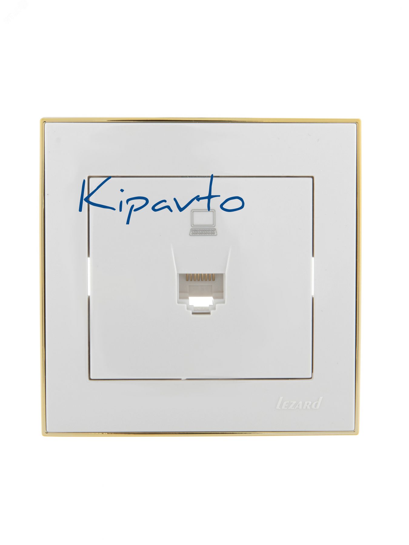 Розетка RAIN компьютерная белая с боковой вставкой золото