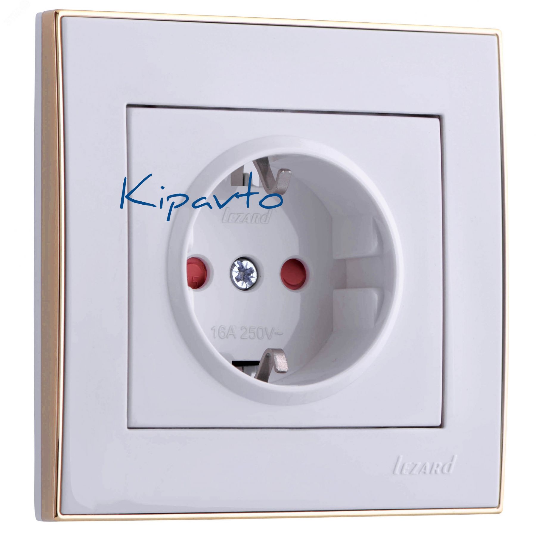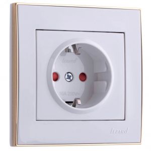 Розетка RAIN с защитой от детей керамика белая с боковой вставкой золото