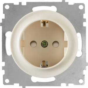 Розетка с заземлением, защитные шторки, винтовые контакты, цвет бежевый (серия Florence)