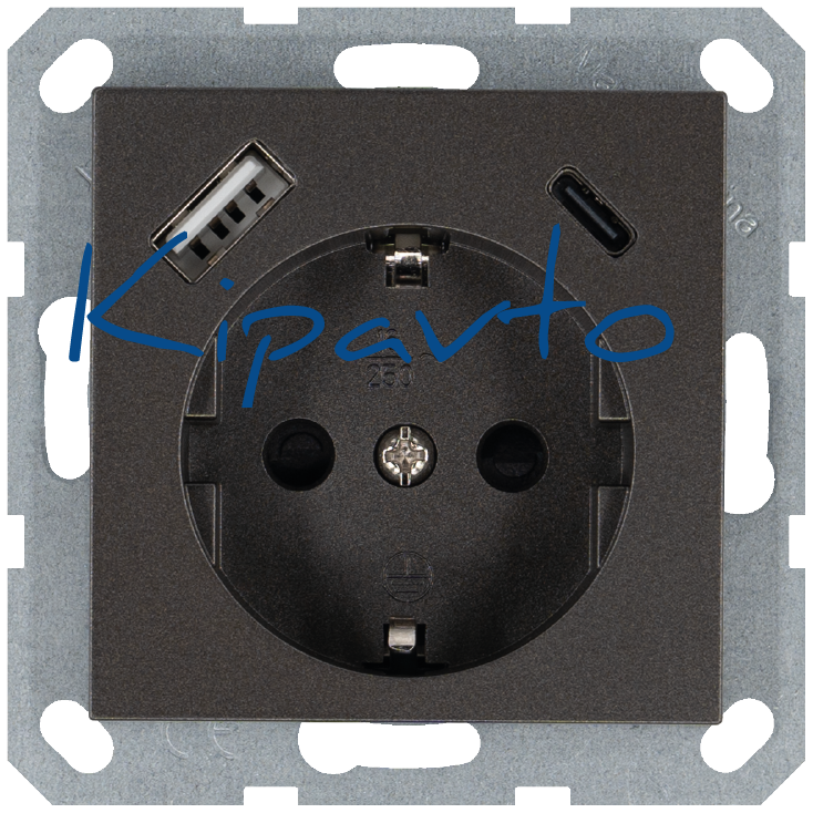 Розетка Schuko с USB A+C с защитными шторками 16A 250V~ 2P+T USB 25W, цвет Мокко