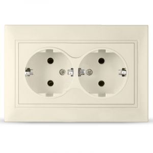 Розетка Севиль 2-ая с заземлением слоновая кость (ivory)
