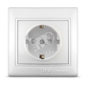 Розетка Севиль с заземлением с защитной шторкой белая