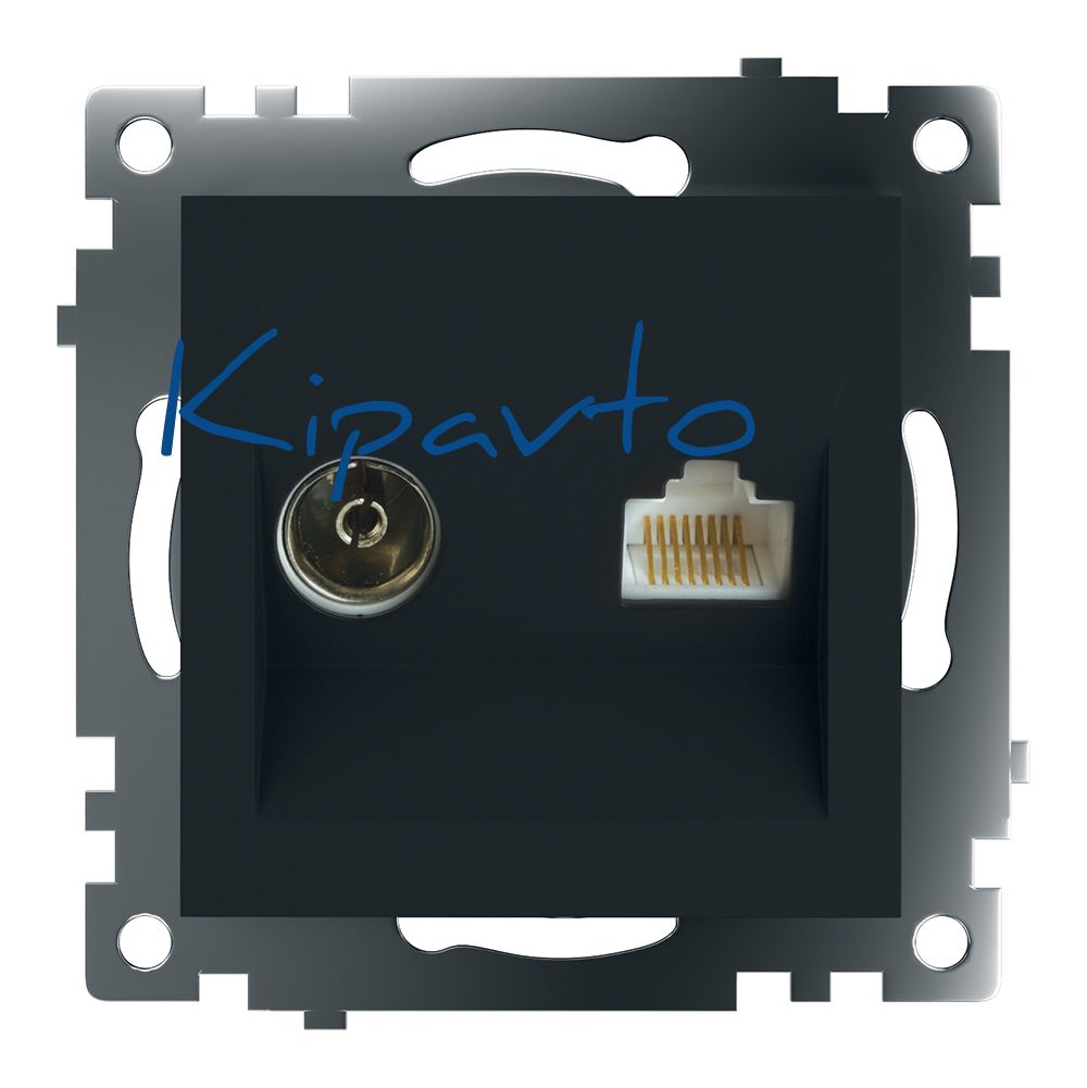 Розетка TV + компьютерная RJ-45 (механизм) серия Катрин черный STEKKER