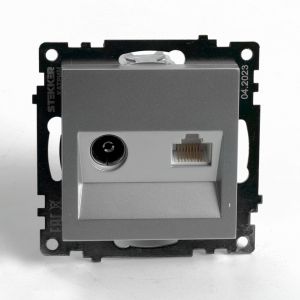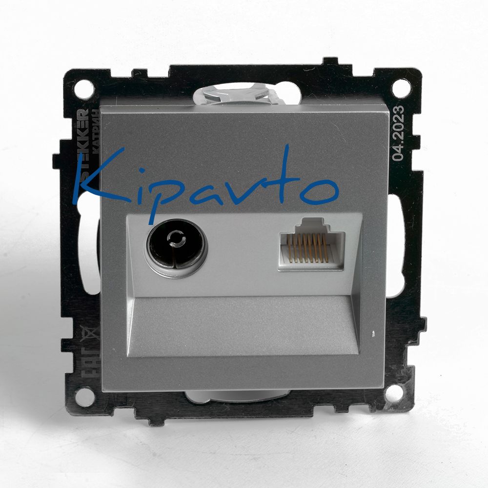 Розетка TV + компьютерная RJ-45 (механизм) серия Катрин серебро STEKKER