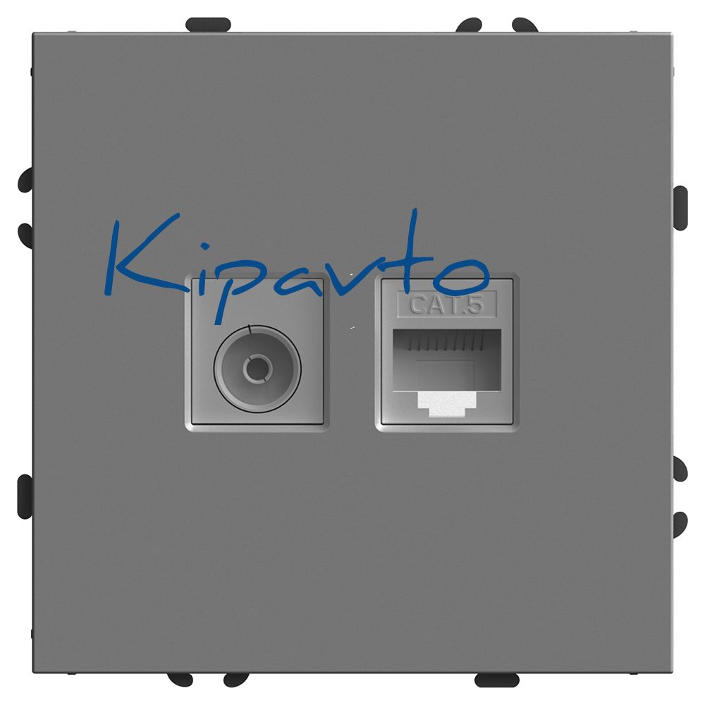 Розетка TV + компьютерная RJ-45 серия Эмили,платиново-серый soft touch STEKKER