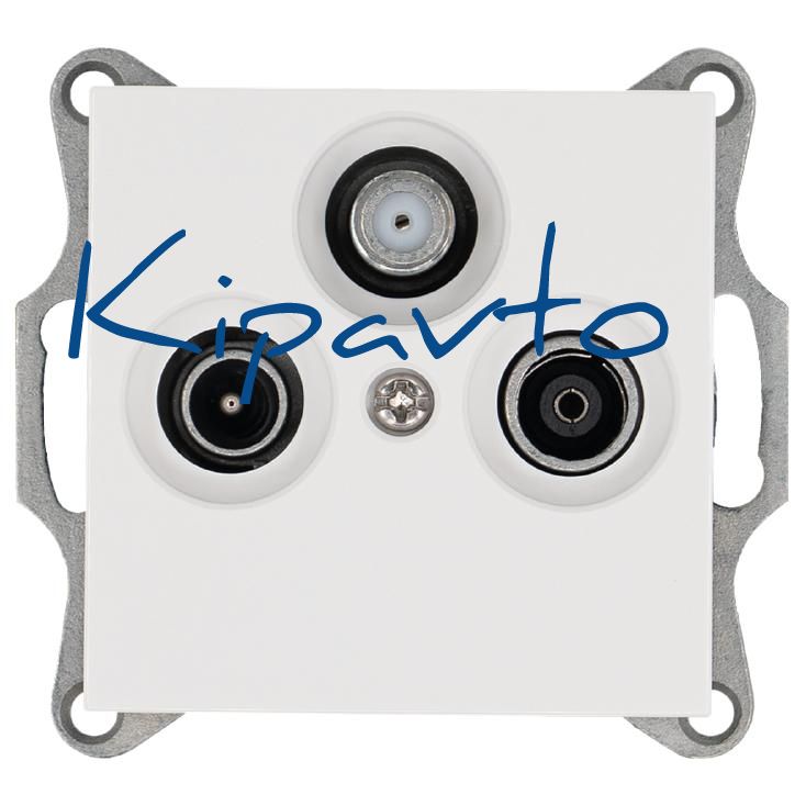 Розетка TV+FM+SAT9.5 мм оконечная с накладкой, цвет белый глянцевый